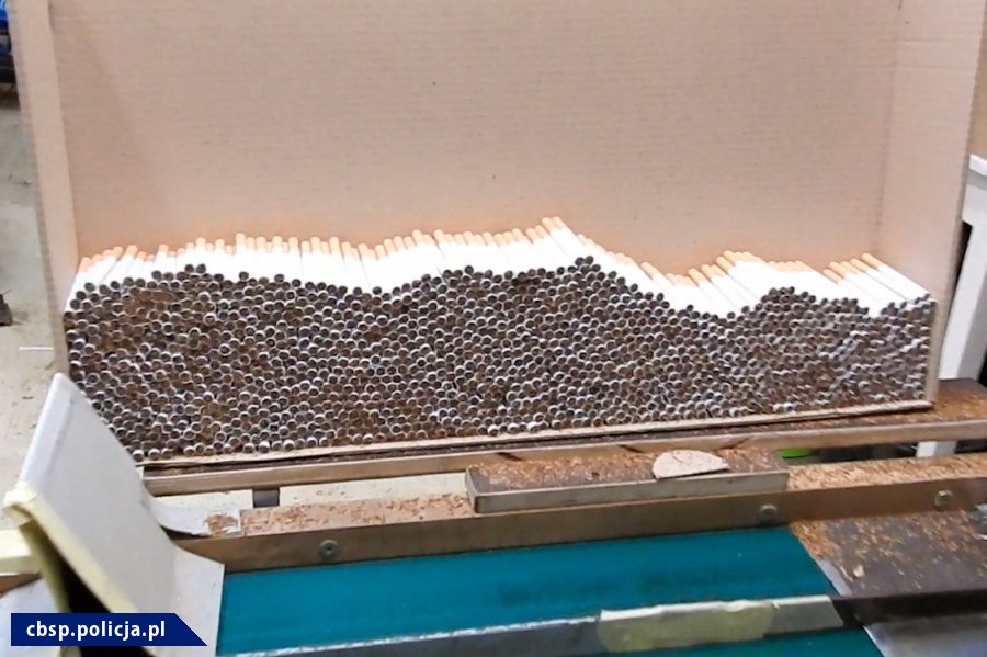 Jak się okazało na prywatnej posesji ukryta była fabryka papierosów. Tam też zatrzymano 4 osoby, które na widok mundurowych próbowały uciekać. Jednak już po chwili zostały zatrzymane. Niebawem w ręce funkcjonariuszy wpadła jeszcze jedna osoba. Podczas akcji zabezpieczono urządzenia do produkcji papierosów, blisko 1,5 tony tytoniu bez akcyzy i 360 tysięcy gotowych papierosów.
