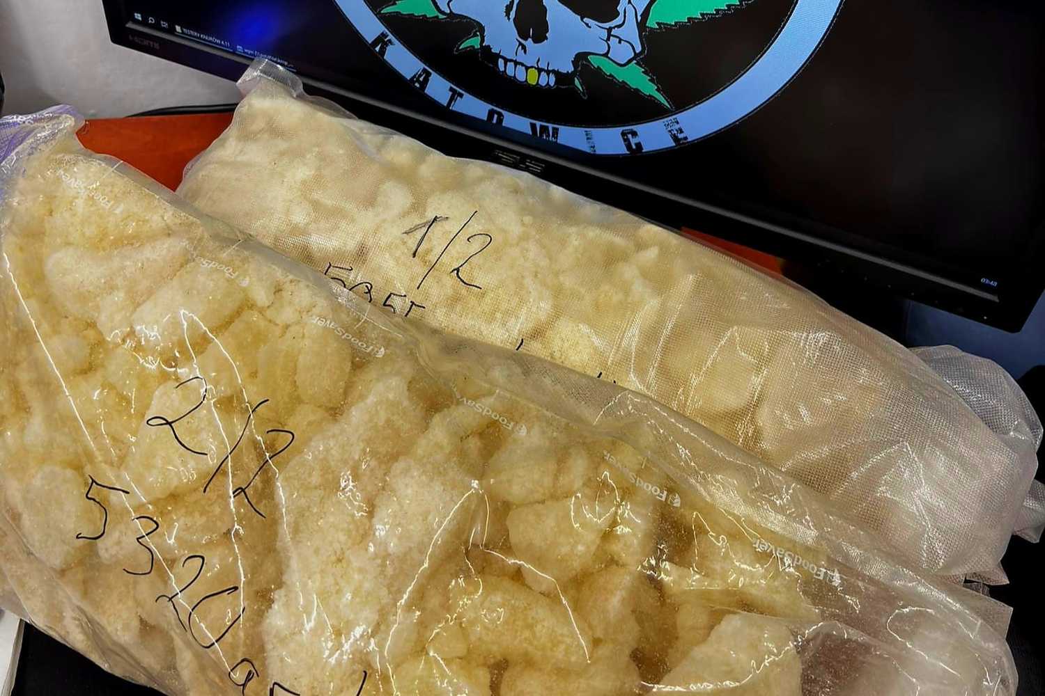 Szeroko zakrojone działania i współpraca funkcjonariuszy CBŚP oraz z Wydziału d/w z Przestępczością Narkotykową i Pseudokibiców Komendy Miejskiej Policji w Katowicach, wsparte przez policjantów z komisariatu w Knurowie, doprowadziły do zatrzymania trzech mężczyzn powiązanych ze środowiskiem pseudokibiców. Podejrzanym zarzuca się obrót znacznymi ilościami środków odurzających, za co trafili do tymczasowego aresztu. Policjanci zabezpieczyli łącznie blisko 25 kilogramów różnego rodzaju narkotyków.