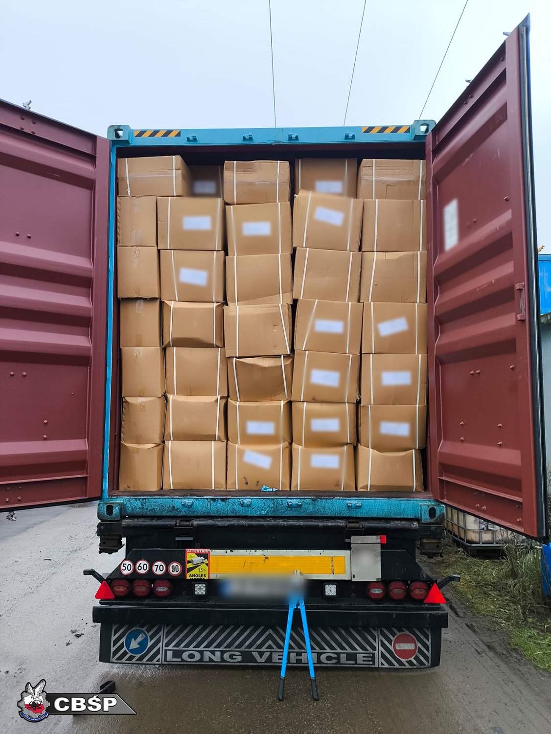 W trakcie prowadzonych działań na teren posesji wjechał ciągnik siodłowy z kontenerem. W jego wnętrzu znajdowało się kolejne blisko 13 ton tytoniu bez polskich znaków akcyzy. Dalsze czynności doprowadziły mundurowych do jeszcze jednego kontenera wypełnionego nielegalnym towarem.