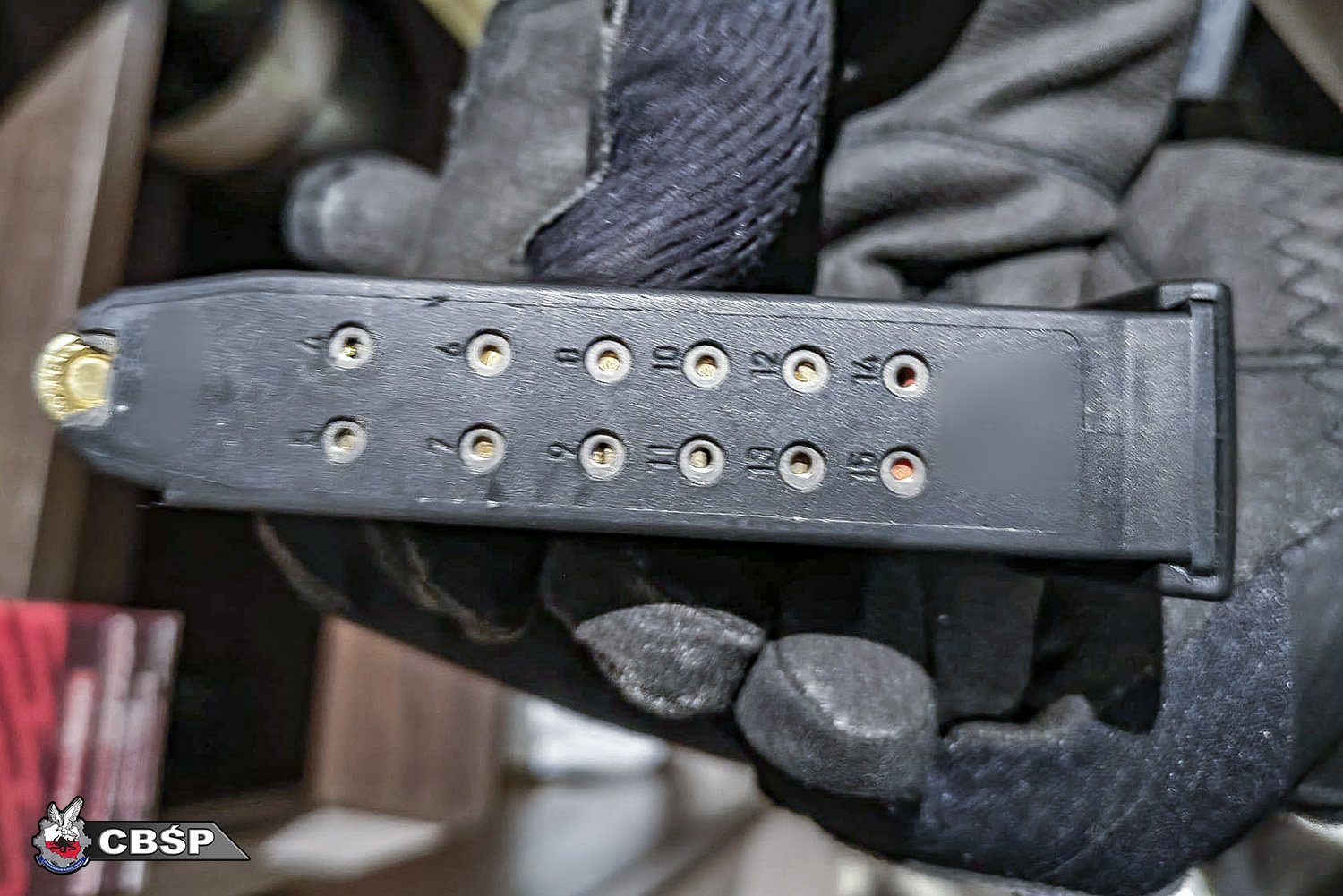 W wyniku przeprowadzonych czynności policjanci przeszukali wytypowany lokal. Na miejscu ujawnili karabin automatyczny AK-47 kal. 7,62 mm, pistolet Glock 19 wraz z magazynkiem oraz 14 sztuk amunicji.
