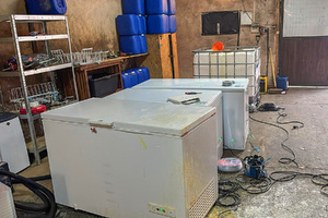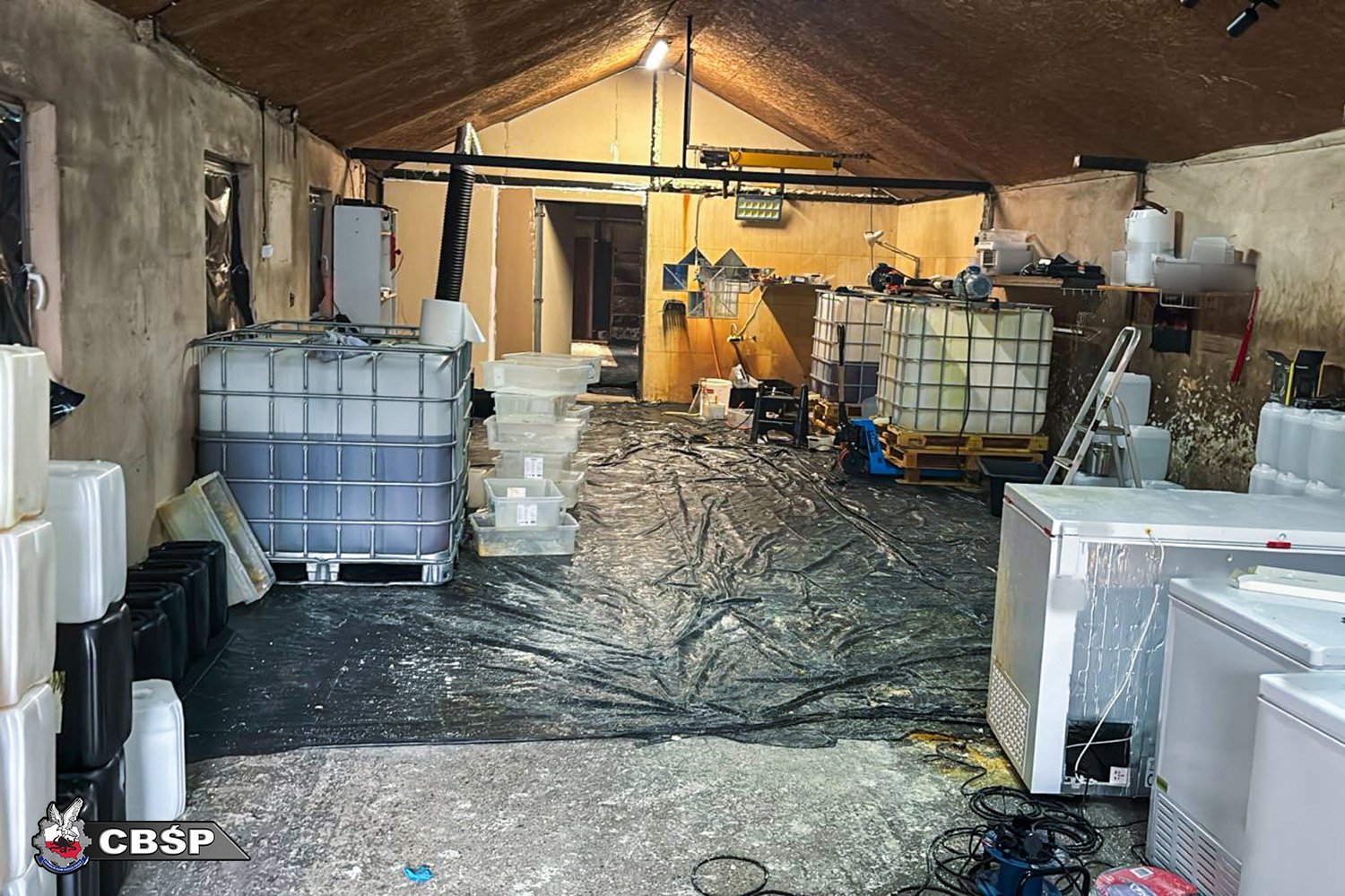 Na miejscu mundurowi ujawnili i zabezpieczyli ponad 44 kilogramy Alfa-PVP, a także tysiące litrów różnego rodzaju substancji stanowiących półprodukty i prekursory niezbędne do produkcji tego środka odurzającego.